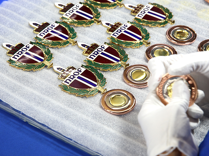 琺瑯徽章,即用琺瑯入色的方法制作的徽章,是最高端的入色工藝,常見于制作軍隊、國家機關證章及特別有紀念意義、要長久保存的證章、紀念幣、勛章等。合樂工廠37年專注于設計定制生產真琺瑯徽章,選用天然礦物石琺瑯粉,經過高溫燒制,形成堅硬不易刺傷且一百年不褪色的真琺瑯徽章。