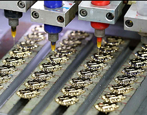 烤漆是在徽章制造中的一種噴漆制作方法(工藝)。其方法是:在打磨到一定粗糙程度的基底上滴上若干層亞克力油漆。并經(jīng)高溫烘烤定型。 該工藝目前對油漆要求較高,顯色性好。烤漆徽章的制作材料一般為銅、鐵、鋅合金等,其中以鋅合金、鐵質(zhì)、青銅用的最多,其表面多具有明顯的凹凸感,質(zhì)感好,適合一些中高檔徽章的制作。制作流程:設(shè)計制圖——出黑(凸起)白(凹下)菲林——曬版——咬版——刻模——切模——沖壓——拋光——電鍍——焊配件——上色(烤漆)——加波麗——烘干——品檢——包裝——出貨。